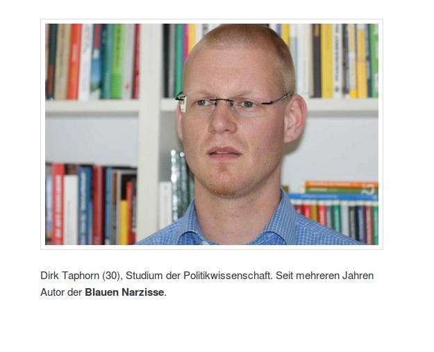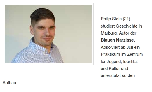 Ansonsten schreibt Taphorn auch gelegentlich für die Erwachsenen-Version der „Blauen Narzisse“, die „Junge Freiheit“. Außerdem ist er Mitarbeiter im „Zentrum für Jugend, Identität und Kultur“ in Dresden, eine der „Blauen Narzisse“ angelagerte Institution. Doch sollte der hochtrabende Name nicht zu sehr täuschen. In einer 64 Quadratmeter großen Kellerwohnung im Dresdner Villenviertel „Weißer Hirsch“ grübelt die selbsternannte neurechte Elite, eine handvoll junger Männer, darüber nach wie das deutsche Vaterland und seine völkische Substanz zu retten sei. Ein erkennbar große Ausstrahlung hat das 'Zentrum' bisher nicht entwickeln können. Es wird sich noch zeigen müssen, ob der vergleichsweise noch junge und unerfahrene Taphorn seinem neuen Job als Chefredakteur gewachsen ist.