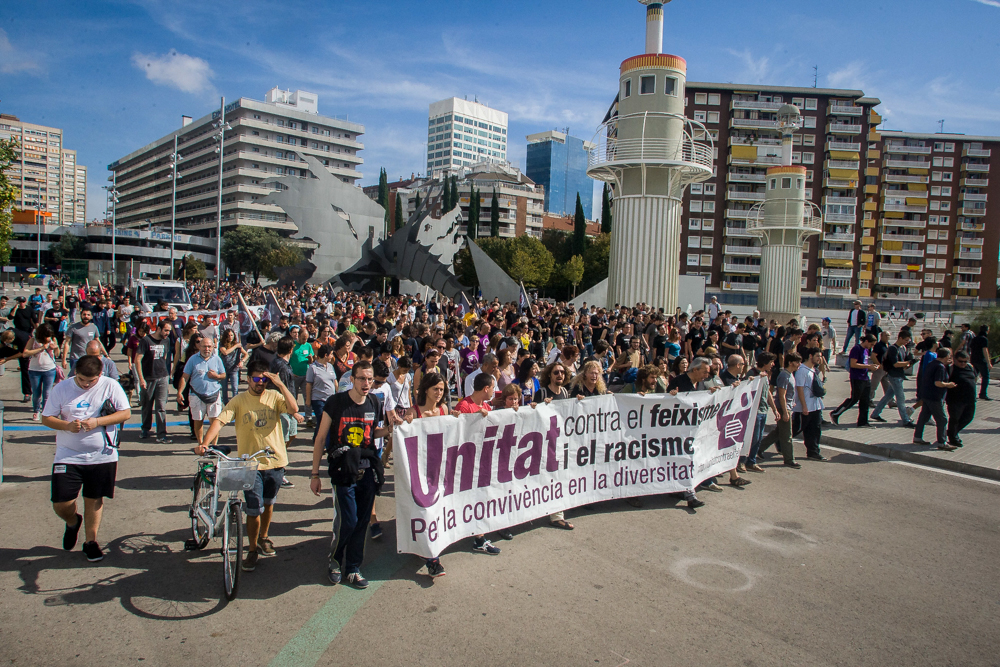 Noch Mitte der 1990er Jahre wurde von den Neonazis versucht ihre Demonstration im links-alternativen Stadtteil Barcelona-Sants durchzuführen. Diese Versuche riefen damals militanten antifaschistischen Widerstand hervor, der den Druck auf die Stadt erhöhte, sodass die Neonazis seit 2000 eine weniger zentral gelegene (Ausweich-)Route auf den Berg Montjuic nehmen müssen. 2001 hatte es zum vorerst letzten Mal eine größere antifaschistische Mobilisierung gegeben, die von militanten Auseinandersetzungen begleitet war. Nach einem Versuch den Montjuic zu stürmen, gab es nicht nur viele verletzte Antifaschist_innen und zahlreiche Festnahmen, sondern auch Diskussionen innerhalb der Plataforma Antifeixista über Strategie und Ausrichtung der Gegenproteste. Dies führte u.a. dazu, dass es über mehrere Jahre zu keiner antifaschistischen Mobilisierung mehr kam. Einzige Ausnahme bildet das Jahr 2007, in dem pazifistische Gruppen zu Gegenaktivitäten aufriefen. Die Plataforma Antifeixista begann erst im Jahre 2011 wieder mit einer eigenständigen Mobilisierung. Es gelang zwar nicht die Neonazidemonstration zu stören, doch wurde der Ort eines Rechtsrock-Konzertes, das am Abend im Stadtteil Barcelona-Poblenou stattfinden sollte, bekannt und es kam zu direkten Angriffen auf neonazistische KonzertteilnehmerInnen. In der Folgezeit setzte eine Reorganisierung der Plataforma Antifeixista ein und seit 2013 gibt es nun wieder eine kontinuierliche Mobilisierung gegen die Neonazidemonstration sowie einen antifaschistischen Kongress im Vorfeld.