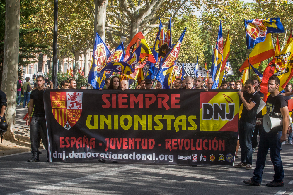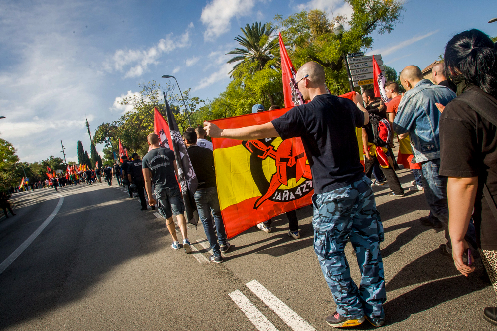 1993 gründete sich das antifaschistische Aktionsbündnis Plataforma Antifeixista in Barcelona und mobilisiert seitdem gegen die Aktivitäten spanischer Neonazis. Den Schwerpunkt bilden Aktionen gegen eine neonazistische Demonstration, die alljährlich anlässlich des nationalistischen spanischen Feiertages am 12.10. in Barcelona stattfindet. Zu dieser rief, wie bereits im letzten Jahr, das im Juli 2013 gegründete Neonazibündnis „La España en Marcha“ auf, das aus den Gruppierungen La Falange, Nudo Patriota Español (NPE), Alianza Nacional (AN), Movimiento Católico Español und Democracia Nacional (DN) besteht.
