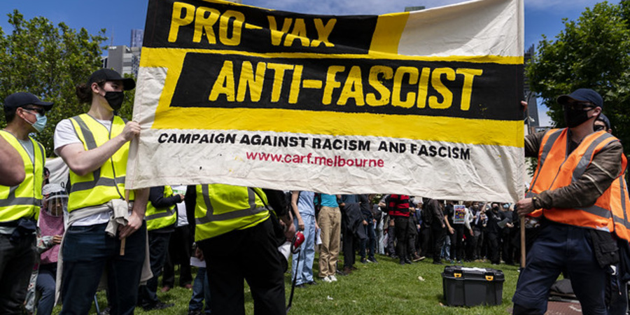 Fast ausnahmslos betrachtet die extreme Rechte die Bewegung gegen Impfungen und andere Maßnahmen im Bereich der öffentlichen Gesundheit als einen politisch fruchtbaren Boden. In dieses Umfeld versucht sich die extreme Rechte einzufügen, indem sie gleichzeitig die Gewerkschaften wegen ihrer mutmaßlichen Mitschuld an der Verweigerung des Rechts der Arbeitnehmer, ihre Arbeitskraft auf dem „freien“ Markt zu verkaufen, anprangern und sich als Verfechter der Arbeitnehmer gegen die tyrannische Kontrolle der Regierung darstellen. In dem Maße, in dem Gewerkschaften wie die CFMEU als „Handlanger“ der Regierung verstanden werden, die für die Durchführung einiger der strengsten und längsten Schließungen der Welt verantwortlich ist, werden sie zu einem Blitzableiter des Dissenses.