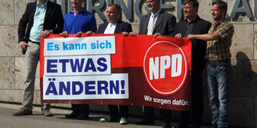Ziel der NPD ist nach eigenen Angaben der „Einzug in den Landtag von mindestens sieben Abgeordneten“. Folgerichtig belegen die ersten sieben Plätze auf der Landesliste langjährig erfahrene Funktionäre und NPD-Kommunalpolitiker wie Patrick Wieschke, Thorsten Heise, Tobias Kammler und Patrick Weber. Für die praktische Unterstützung appellierte hatte Wieschke bereits auf dem Landesparteitag im März an „Kameraden“ außerhalb der NPD appelliert, „an einem Strang zu ziehen“. Damit meint Wieschke beispielsweise das „Bündnis Zukunft Hildburghausen“ um den Neonazi Tommy Frenck, die „Aktionsgruppe Nordhausen“ oder den vom V-Mann und ehemals aktiven Neonazi Kai-Uwe Trinkaus initiierten Verein „Pro Erfurt“. Deren Vertreter erhielten mit dem NPD-Ticket in der Tasche Kommunalmandate und unterstützen die NPD beim Landtagswahlkampf vor Ort, nachdem die Zahl der NPD-Mitglieder nach einem kurzfristigen Anstieg im letzten Jahr wieder leicht gesunken ist. Trotz ihrer gespielten Seriosität ist die NPD also auch auf die Hilfe gewaltbereiter Neonazis zurückgreifen angewiesen, deren Zahl konstant und ihre Bereitschaft zur Gewalt ist unverändert hoch geblieben ist. 2013 wurden im Freistaat mehr als doppelt so viele Gewalttaten von rechts registriert als im Vorjahr.