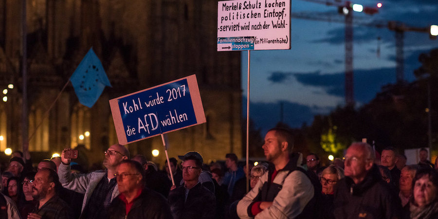 Flirten mit CDU-WählerInnen bei einer AfD-Wahlkampfkundgebung in Magdeburg.
