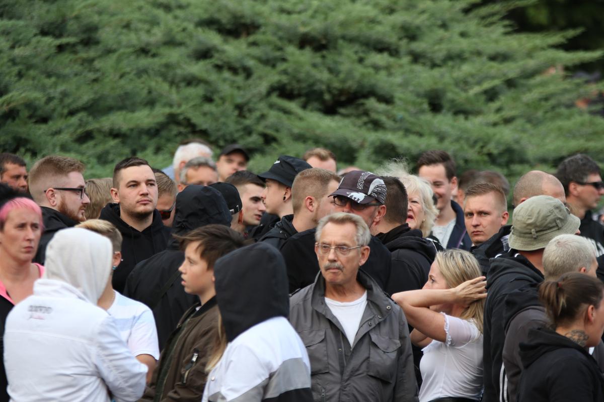 Das Bild, welches die AfD auf ihrem „Trauermarsch“ am 1. September 2018 tatsächlich abgab, entsprach den angekündigten Vorstellungen nur begrenzt. Schon ab 16 Uhr versammelten sich bis zu 2.000 Personen auf der Kundgebung von "PRO Chemnitz" um Martin Kohlmann. Die Mehrheit dieser Personengruppe kann dem Spektrum der (extremen) Rechten zugerechnet werden: Personen aus der organisierten Neonazi-Szene um NPD und „Der III. Weg“, extrem rechte Hooligans u.a. aus Berlin, Cottbus, Chemnitz und Dresden, sowie AktivistInnen der „Identitären Bewegung“. Nach Beendigung dieser Kundgebung rief einer der Redner die Teilnehmenden auf, „rüber zur AfD“ zu gehen. Ein Großteil der ZuhörerInnen folgte dem Aufruf.