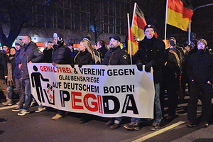 Zur anfänglich stationären Kundgebung am Montag erschienen ab 18:30 Uhr verschiedene extrem rechte Gruppierungen. Bewusst sichtbar gab sich die Neonazi-Kleinstpartei „Der III. Weg“ zu erkennen. Um die 30 Personen, mehrheitlich in Bekleidung der Partei und mit einheitlichen Schildern gegen „die Asylflut“ bestückt, skandierten sie Parolen wie „Nationaler Sozialismus Jetzt“ und „Frei Sozial und National“ - Slogans, die sonst auf klassischen Aufmärschen der extremen Rechten zu finden sind.