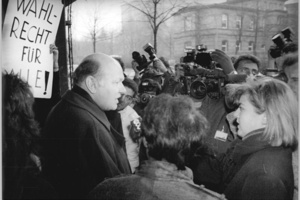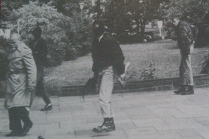 AIB: Seht ihr im Augenblick eine Gefahr, die von den Neonazis in DDR ausgeht oder ist es ein Hirngespinst der SED? Stefan: Als erstes ist es wichtig festzustellen, was jetzt immer untergeht, das diese Tendenz schon viel länger besteht als die "Wende". Jens: Es ist falsch, wenn jetzt der Eindruck entsteht, das Neonazis was ganz neues in der DDR sind. Organisierte Rechtsextreme gibt es seit fünf Jahren, würde ich sagen. Stefan: Unterschwellig gabs das schon immer, aber extrem kam das hoch als die Skinheadbewegung neonazistisch unterwandert wurde, 1982 bzw. 1983 ungefähr. Da begann das auch mit