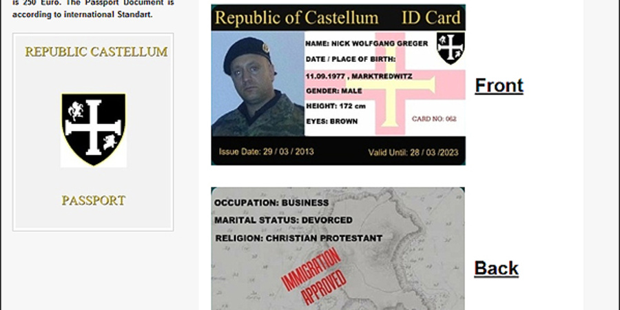 Der „Krieg“ zwischen dem bis dahin angeblich regierenden König Dan I. und der CLM dauerte laut Eigenaussage gerade einmal zwölf Stunden, da die „christlichen Befreier“ eine „Blitzkriegstrategie“ anwendeten. Mit Waffen und martialischem Gestus zumindest kennen sich die selbsternannten Befreier tatsächlich aus, handelt es sich bei dem „Minister für Einwanderung und auswärtige Angelegenheiten“ doch um den wegen Vorbereitung eines Sprengstoffanschlages verurteilten Deutschen Nick Greger. Dass dieser nicht nur eine bewegte Zeit in der Neonaziszene verbracht hat, sondern auch eine Menge Fantasie besitzt, zeigt die Republik „Castellum“, die ganz uneitel auch als „Greger’s Republik“ firmiert.