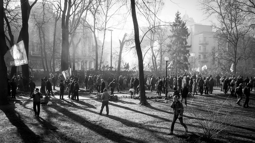 Noch zu Jahresbeginn 2014 wurden die Proteste in den deutschen Medien fast durchweg positiv dargestellt, den Protagonist_innen und den Massen auf den Demonstrationen hehre Ziele und der Wunsch nach EU-genormter Demokratie unterstellt. Kritik an den Aussagen einzelner Politiker und der massiven Verwendung von Symbolen faschistischer Organisationen kam erst spät auf. In den russischen Medien war hingegen nahezu ebenso flächendeckend eine völlig gegensätzliche Meinung über die gleichen Protagonisten vorherrschend: Hier begehrte der faschistische Pöbel gegen den legitimen Präsidenten des Landes auf.