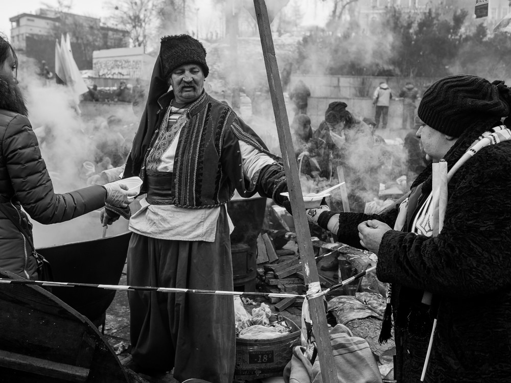 Nicht nur die nationalistische und religiöse Symbolik, auch die Sprechchöre und Gesänge weisen starke Rückgriffe auf Unabhängigkeitsbestrebungen der 20er bis 50er Jahre des 20. Jahrhunderts auf. Diese waren stark antirussisch/-sowjetisch und antisemitisch geprägt. Bis heute ist in der Westukraine Stefan Bandera, einer der Führer der Unabhängigkeitsbewegung OUN der 30er und 40er Jahre, ein gefeierter Held, dem eine Vielzahl von Denkmälern gewidmet ist. Dass Bandera mit der deutschen Wehrmacht kollaborierte wird bis heute von vielen als notwendiges Übel betrachtet, nicht als Ausdruck der Nähe der Ideologie der OUN zum Nationalsozialismus.