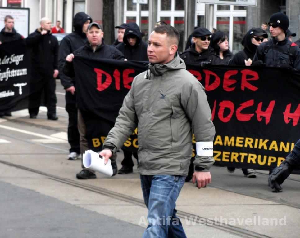 Andreas Biere war der führende Kopf der 2007 aufgelösten Kameradschaft „Festungsstadt Magdeburg“. Ein Blick auf seine Vergangenheit zeigt deutlich, wie fest der 36-Jährige Klein Wanzlebener in der Szene verankert ist. Anfang 2001 reiste Biere gemeinsam mit einem weiteren Mitglied des „Selbstschutz Sachsen-Anhalt“ nach Südafrika und besuchte in der Region um Kapstadt ein neonazistisches „Trainingszentrum“ (vgl. Nr. AIB Nr. 99). Zeitweise war Biere stellvertretender Vorsitzender des NPD-Kreisverbandes Magdeburg und zudem in „Blood and Honour“-Strukturen eingebunden. Derzeit tritt er mit Redebeiträgen, Vorträgen und Publikationen in Erscheinung. Biere ist Herausgeber des einschlägigen Magazins „Ein Fähnlein“ und veröffentlichte allein im NPD-nahen „Nation und Wissen“ Verlag zehn Bücher mit NS-Biographien, vorwiegend von SS-Mitgliedern. Am 18. Januar 2014 hielt er einen Redebeitrag auf der Zwischenkundgebung und leitete die Schweigeminute an.