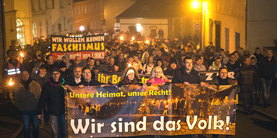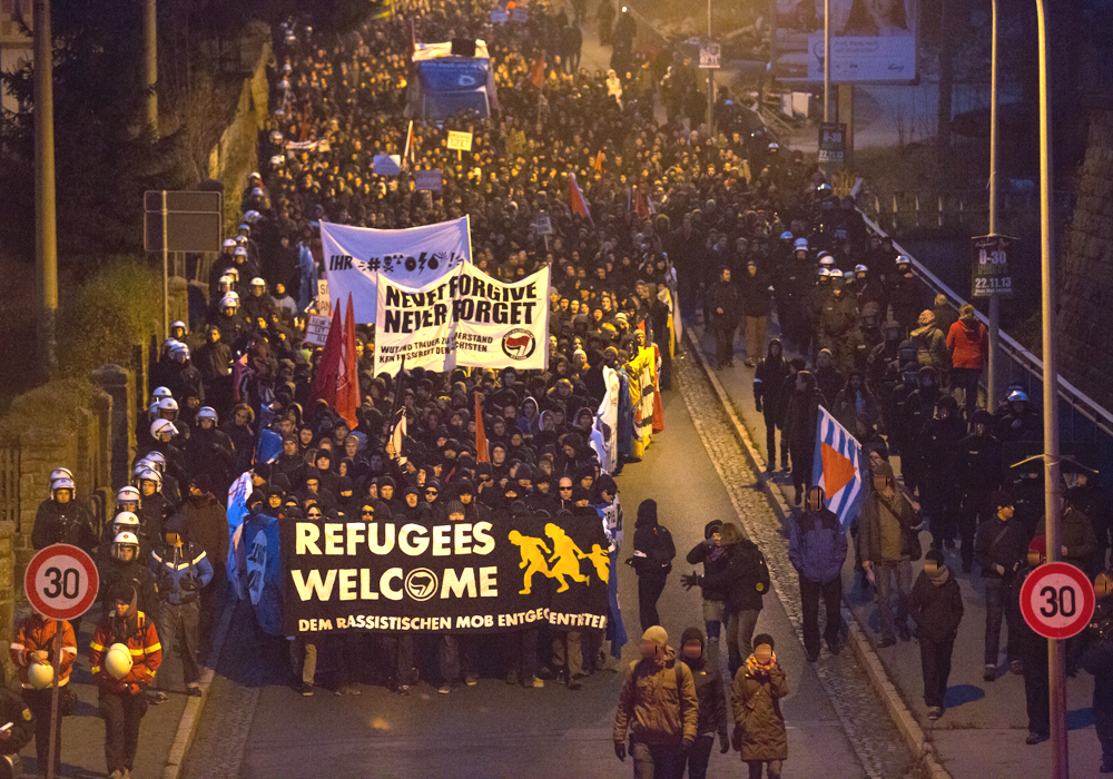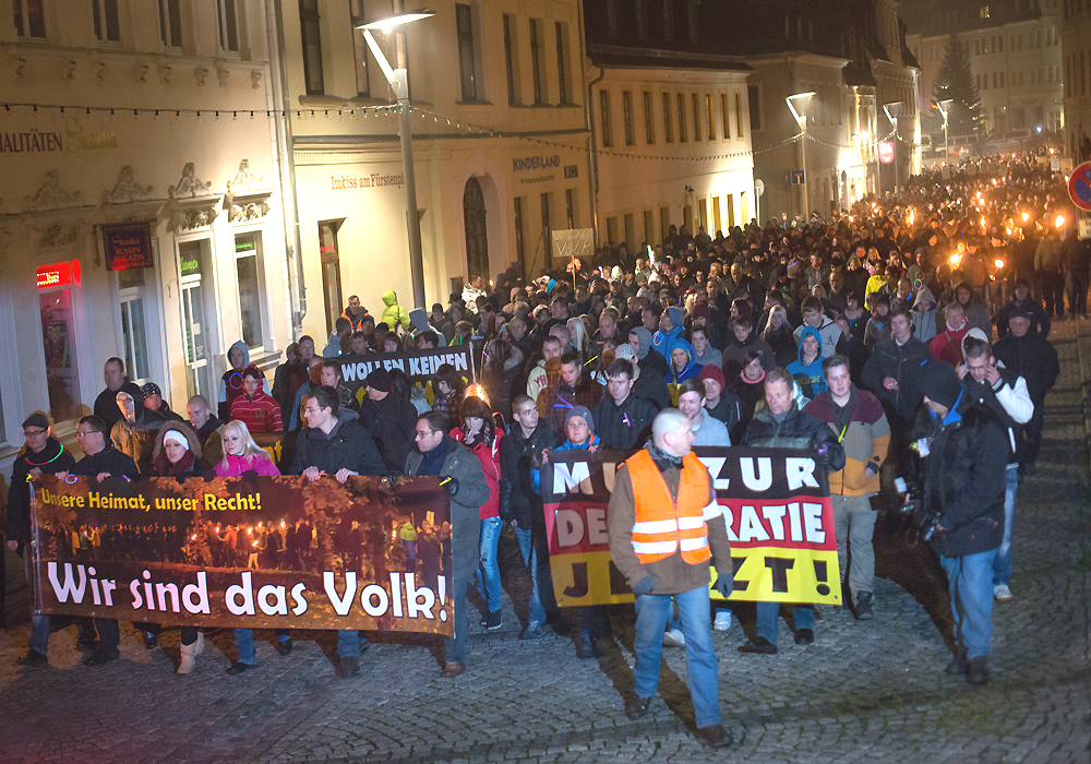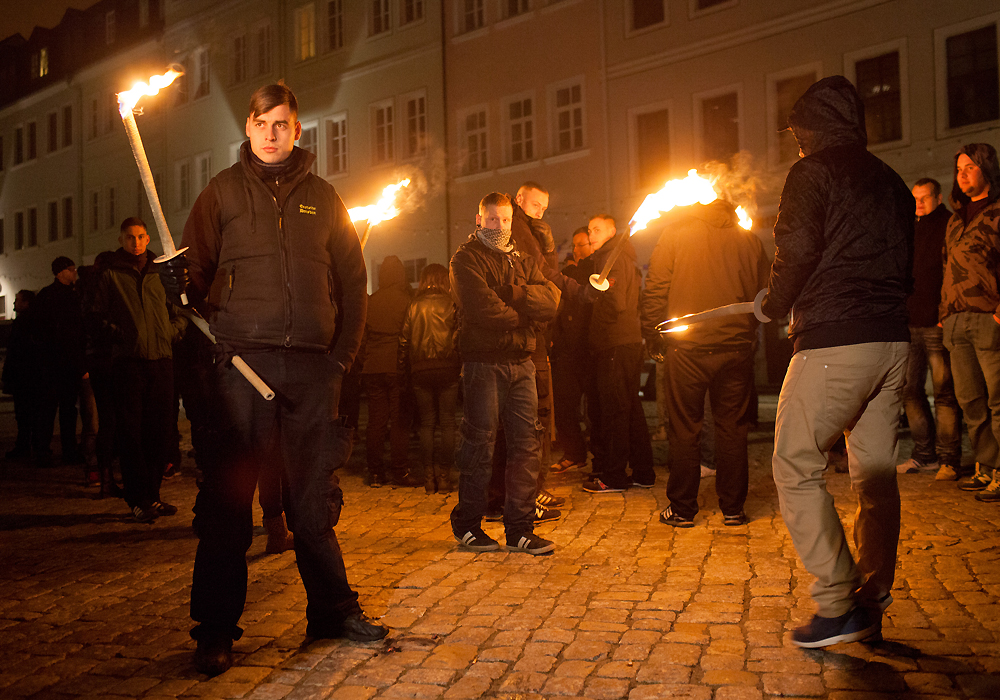 16. November 2013: Fackelmarsch von 1.500 Neonazis und Bürger_innen gegen die Unterbringung von Flüchtlingen in der ehemaligen Jägerkaserne in Schneeberg.