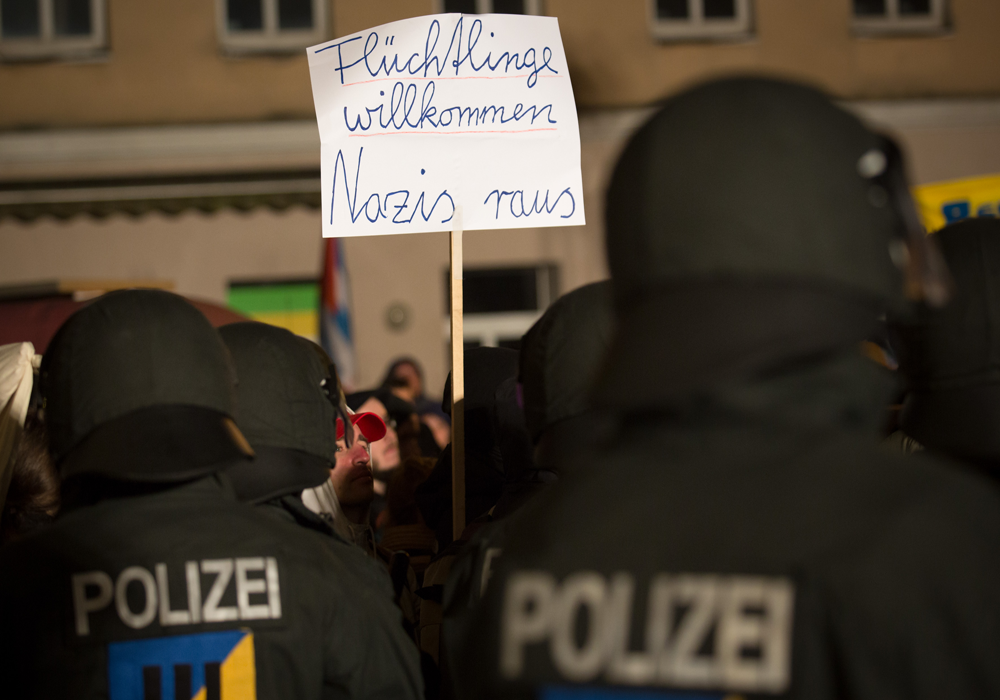 Die „Greizer Bürgerinitiative gegen ein Asylbewerberheim ,Am Zaschberg‘“ basiert auf einer Initiative lokal bekannter Neo-Nazis, gut angebunden an NPD und „Autonome Nationalisten“. Nachdem von der lokalen Verwaltung ohne Informationen und Kommunikation mit den Anwohner_innen der Großwohnsiedlung eine Erstaufnahmeunterkunft für Asylsuchende in einem verlassenen Schulinternat eingerichtet worden war, bemühten sich Neonazis mit Anwohner_innen und Bürger_innen ins Gespräch zu kommen. Mit der Bedienung rassistischer und sozialdarwinistischer Ressentiments jeglicher Couleur schaffte es die Initiative auf Facebook schnell über 1.500 ,likes‘ zu sammeln und vernetzte sich mit anderen rassistischen Initiativen, z.B. in Schneeberg. Von Anfang an trat die Bürgerinitiative in Greiz offen verbalradikal und aggressiv auf, schnell fingen die anfänglich zustimmenden Greizer_innen an, die allfreitäglichen Demonstration, bei denen der bekannte Kameradschaftsaktivist aus Ostthüringen David Köckert („Revolutionäre Nationale Jugend Vogtland“) als Anmelder in Goebbels ähnlicher Manier über die Lautsprecher-Anlage hetzte, zu meiden. Nachdem sich im Oktober und November 2013 immer mehr Antifaschist_innen und Antirassist_innen an den freitäglichen Mahnwachen für die Flüchtlinge beteiligten und am 9. November 2013 mehrere antifaschistische Gruppen, Gewerkschaften und Flüchtlingsorganisationen zu einer antirassistischen Demonstration mobilisierten, an der ca. 500 Leute teilnahmen, reduzierten sich nach einem weiteren Neonazi-Aufmarsch zwei Wochen später mit ca. halb so vielen Teilnehmenden die Straßen-Aktivitäten der Initiative. Übrig blieb vor allem die rigide Flüchtlingspolitik des Landkreises Greiz und dessen Landrätin, die ihre schöne Stadt in der Auseinandersetzung gegen die Heimsuchung durch „Linksextremisten von außerhalb“ und den Flüchtlingsrat verteidigte. Einer der Höhepunkte war auch ein Zutrittsverbot zur Unterkunft im November 2013 an Menschen die gespendete Kleidung und Spielzeug in der Unterkunft vorbeibringen wollten.