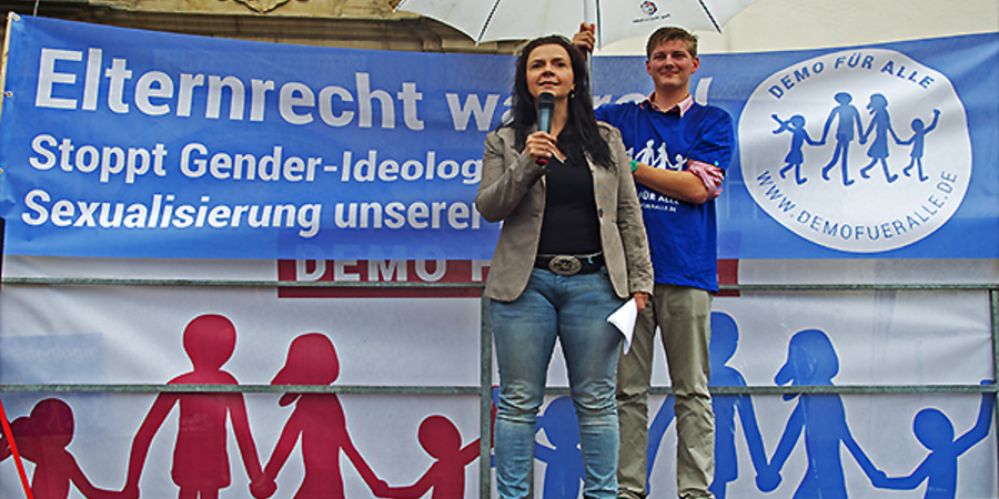. In anti-etatistischer Manier inszeniert sich die extreme Rechte als Anwältin der breiten Massen und erhofft sich im Antifeminismus milieuübergreifenden Anschluss an konservative und christlich-fundamentalistische AkteurInnen.