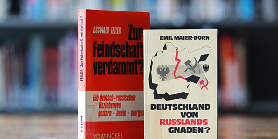 In den folgenden Jahrzehnten blieb es in der extremen Rechten stets umstritten, wie dem gemeinsam vertretenen Ziel der ‚Wiedervereinigung‘ bzw. der ‚Wiedererrichtung des Reiches‘ näher zu kommen sei: als Teil eines militärisch starken ‚Westens‘ oder unabhängig und außerhalb der NATO (und hinsichtlich der DDR vom Warschauer Pakt). Die Kontroverse führte zu zahlreichen Büchern, wie beispielsweise ‚Deutschland von Russlands Gnaden‘ (Emil Maier-Dorn, 1972) oder ‚Zur Feindschaft verdammt? Die deutsch-russischen Beziehungen gestern — heute — morgen‘ (Osswald Feller, 1977). Die Fokussierung von Teilen der extremen Rechten auf Russland brachte zeitweise auch Gruppen wie die Deutsch-Russländische Gesellschaft e.V. (1957—1996) hervor, die sich in ihren Aktivitäten (u.a. Preisverleihungen) und ihrer Zeitung ‚Russland und Wir‘ positiv auf die reaktionäre Russisch-Orthodoxe Kirche sowie die Wlassow-Armee bezog. Die sogenannte Wlassow-Armee war ein russischer Freiwilligenverband, der ab Ende 1944 an der Seite der Nazi-Wehrmacht kämpfte. In jüngerer Zeit trat vereinzelt die vom österreichischen Altnazi Herbert Schweiger gegründete Deutsch-russische Friedensbewegung europäischen Geistes e.V. in Erscheinung.