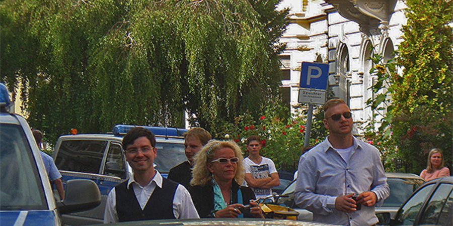 Später wurden dann TeilnehmerInnenzahlen von bis zu 400 als realistisch angesehen und über 20 „Aussteller“ — rechte Verlage, Versandhandel, Zeitschriften, Online-Foren, Initiativen, Projekte u.ä. — präsentiert, als Veranstaltungsort war die Rede von einem „sehr guten Hotel“ in der Nähe des Düsseldorfer Hauptbahnhofes. Es kam, wie es kommen musste: Nach antifaschistischer Öffentlichkeits- und Informationsarbeit und dem Aufgreifen des Themas durch die Lokalpresse kassierte der „Zwischentag“ seinen ersten Rauswurf, das Tagungshotel zog seine Zusage für die als „Buchmesse“ angemeldete Veranstaltung zurück. Es folgten weitere Kündigungen und Fehlschläge, sodass ein Umzug nach Dortmund beschlossen wurde. Ziel war ein Automobil-Museum, das auch noble Veranstaltungsräume vermietet. Als dann am Mittag des 6. September auch dieser Ort öffentlich bekannt wurde und Protest sowie eine Berichterstattung kritischer Medien einsetzte, war auch dieser Veranstaltungsraum Geschichte. Es blieb der Rückzug in „eigene“ Räume, in diesem Fall die der extrem rechten „Alten Breslauer Burschenschaft der Raczeks zu Bonn“. Letztendlich blieben bei der „Schnitzeljagd“ von den 400 erwarteten Gästen deutlich über die Hälfte auf der Strecke. Der Rest musste sich seinen Weg durch Polizeiabsperrungen bahnen, dicht an einer Antifa-Kundgebung vorbei, die zeitweise sogar den Eingang zum Burschenhaus blockierte. Auch diverse der angekündigten Aussteller blieben fern.