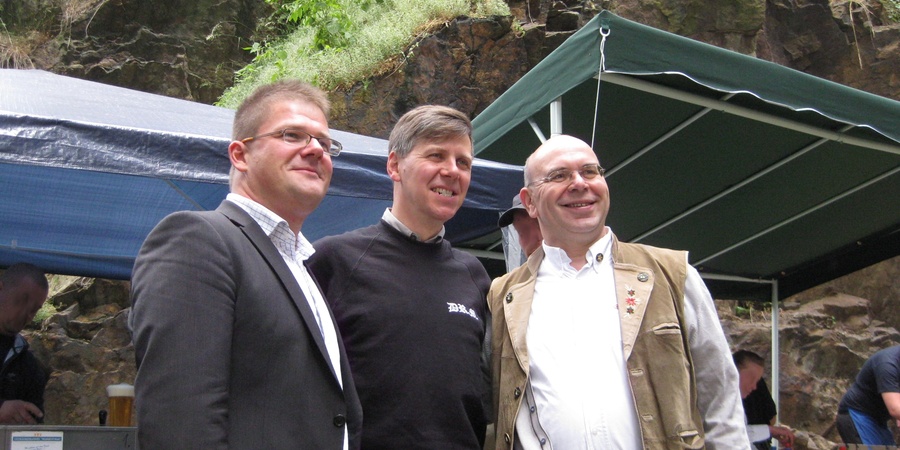 Der NPD-Funktionär Peter Marx (rechts) mit dem früheren NPD-Vorsitzenden Holger Apfel (links) und dem Liedermacher Frank Rennicke.