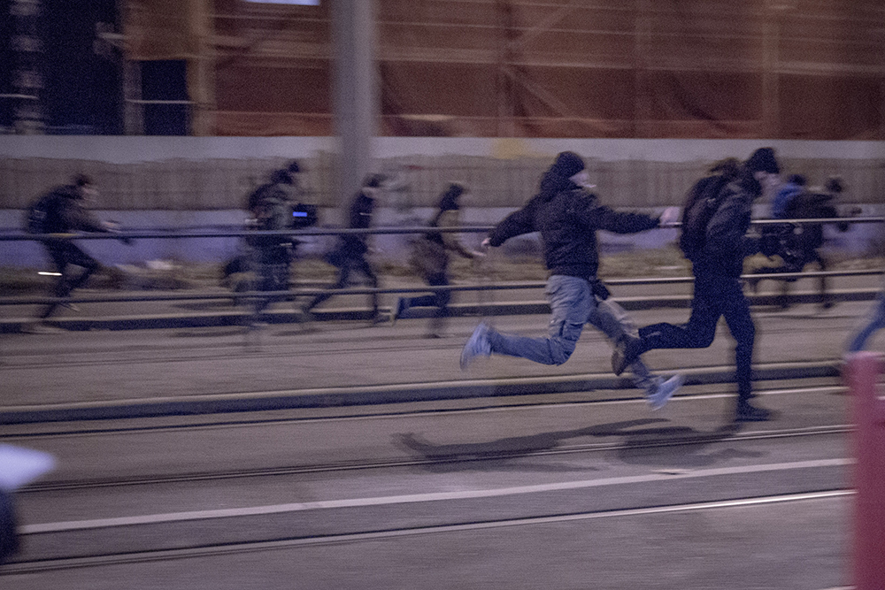 „Schiebt sie weg, los!“ Dieses Kommando setzte den zweiten extrem rechten LEGIDA-Aufmarsch am 21. Januar 2015 in Bewegung. Die teils vollvermummte Spitze des 5.000 Personen starken Pulks verstand sofort und attackierte mehrere JournalistInnen. Das würde sich an diesem Abend in Leipzig noch mehrfach wiederholen, begleitet von „Ahu!“-Rufen und Beamten, die nicht eingreifen. Die Polizei, mit sagenhaften 44 Hundertschaften angerückt, sprach hinterher von einem „weitgehend friedlichen Verlauf“ und davon, keine Angriffe bemerkt zu haben. Sachsens Innenministerium will später doch rund 120 Fußballanhänger ausgemacht haben, inklusive 20 „Kategorie C“-Fans. In einer internen Lageanalyse der Polizeidirektion Leipzig wurde dagegen vermerkt, dass sich dem rechten Aufzug „mindestens 1000 gewaltbereite Personen“ angeschlossen hatten, darunter bemerkenswert viele Hooligans.
