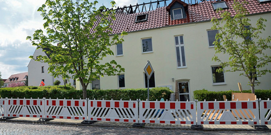 Durch einen Brandanschlag zerstörte Flüchtlingsunterkunft in Tröglitz.