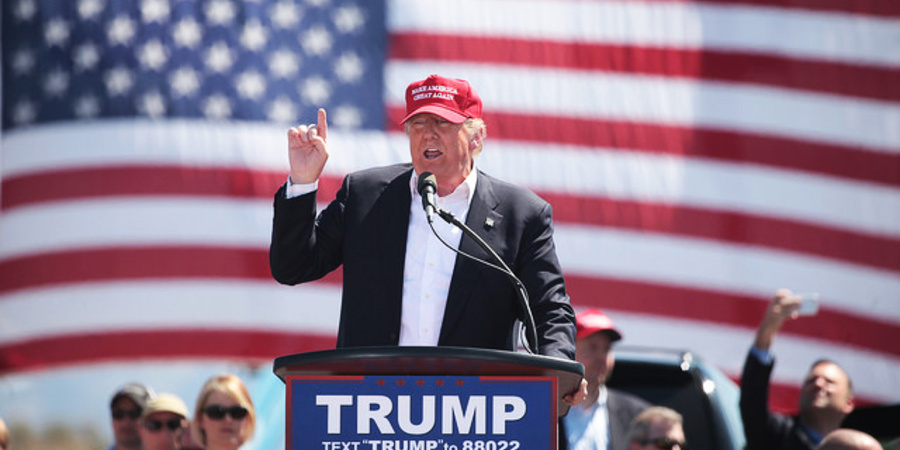 Seit Monaten steht Trump im Rennen der Kandidaten der "Republican Party" um die Nominierung für die Präsidentschaftskandidatur weit vorne. Das hat auch damit zu tun, dass nach dem Stand von Mitte März das Feld hinter ihm reichlich zersplittert ist. Eine „beängstigende Phase für diejenigen von uns, die die bürgerlichen Rechte und Freiheiten und die Demokratie selbst verteidigen“, nannte der bekannte linke Linguist Noam Chomsky den Vorwahlkampf mit Blick auf den „Trumpismus“. Im Juni 2015 sagte Trump bei einer seiner ersten Wahlkampfreden vor Tausenden, Mexiko sei „nicht unser Freund. Sie killen uns an der Grenze, und auch in Bezug auf Arbeitsplätze und Handel. Kämpft!“ Einen Monat später: „Die mexikanische Regierung drängt ihre am meisten unerwünschten Leute in die USA ab. Das sind in vielen Fällen Kriminelle, Drogenhändler, Vergewaltiger etcetera.“ Unangenehmen Fragen einer TV-Reporterin nach seinem Sexismus wich er zunächst aus, um sie dann später als unzurechnungsfähiges Opfer ihrer eigenen Menstruation abzufertigen. Im September bezeichnete er die USA als „Müllhalde für den Rest der Welt“ und schlug die Abschiebung von 11 Millionen undokumentierten Immigrant_innen, einschließlich ihrer Kinder vor, selbst wenn diese die US-Staatsbürgerschaft hätten.