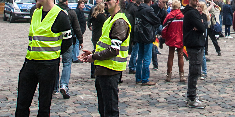 Der DLVH-Kandidat Ralph Kästner (links) als Ordner bei "SBH-Gida".