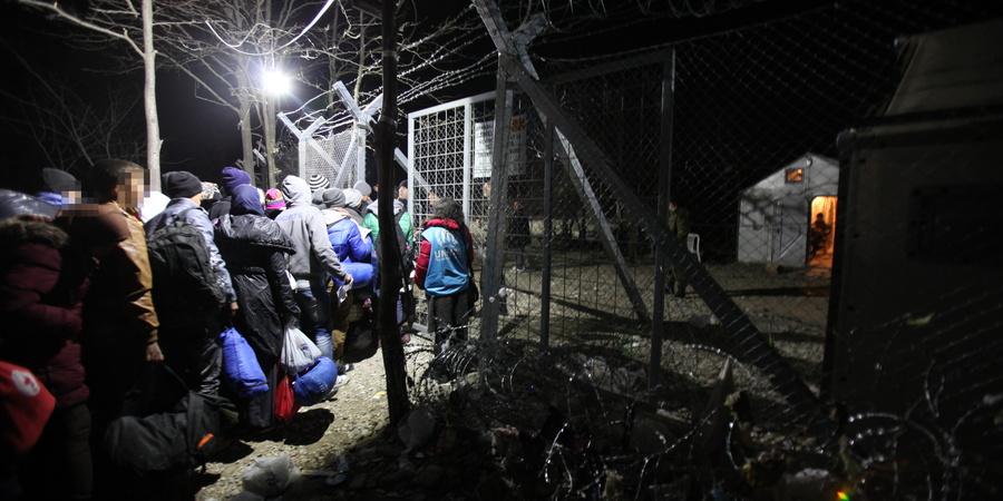 Flüchtlinge müssen ihre Papiere an einem Kontrollpunkt in Eidomeni zeigen. Wer keine hat wird direkt an die griechische Polizei übergeben.