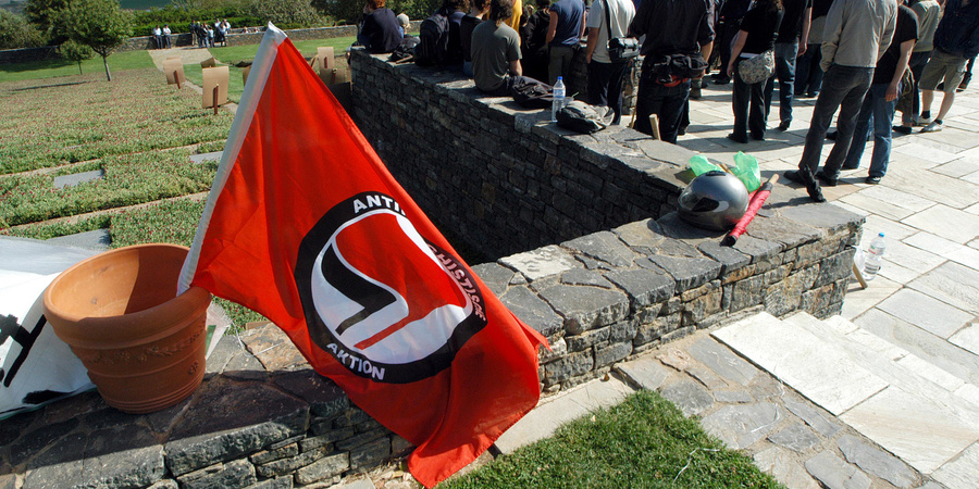 Antifaschistischer Protest gegen das Gedenken an deutsche Fallschirmjäger auf dem „Deutschen Soldatenfriedhof“ in Malema (Kreta).