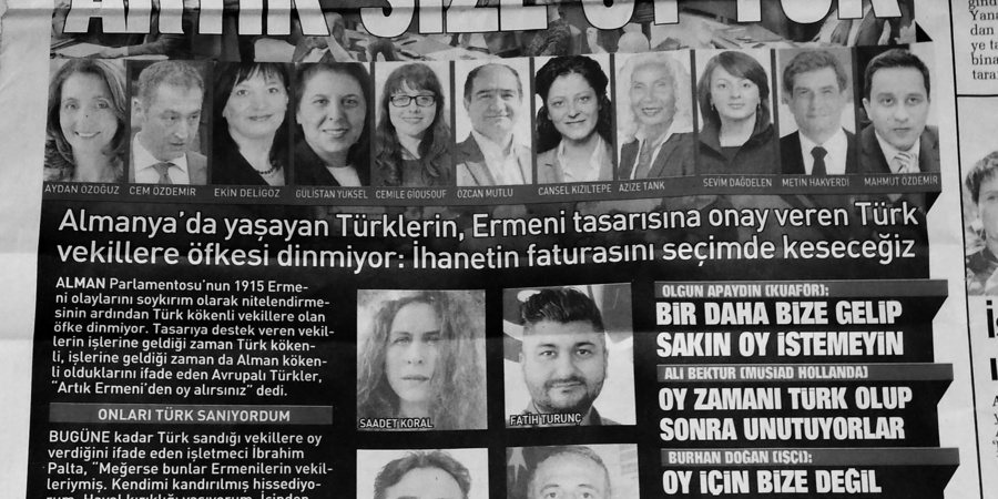 Auch gegen die Armenien-Resolution im Juni diesen Jahres, ein Thema das über die UltranationalistInnen hinaus auf Widerstand stößt, wurde demonstriert. Der Vorsitzende der "Almanya Türk Federasyon" (ATF), Şentürk Doğruyol, bezog ebenfalls eindeutig Stellung und drohte mit Stimmentzug für Abgeordnete mit „türkischem Migrationshintergrund“ wie z.B. Cem Özdemir. Zur Normalität gehört es auch gegen HDP und PKK zu sein. Dies zieht noch weitere Kreise, als die üblichen Verdächtigen an.