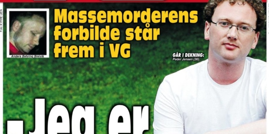 Unter dem Aufmacher „Ich bin Fjordman“ zeigt die Boulevard Zeitung „Verdens Gang“ Peder Are Nøstvold Jensen, das „Vorbild vom Massenmörder“.
