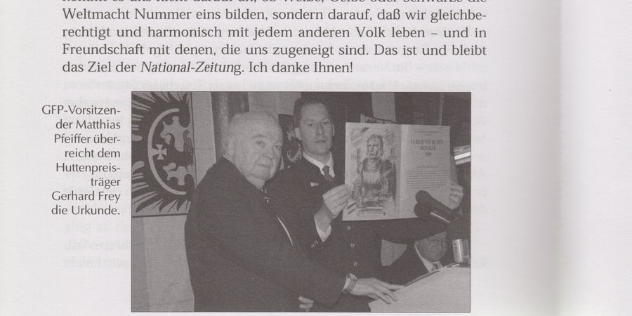 Der Chefredakteur der „Aula“ Martin Pfeiffer (rechts) und der frühere DVU-Vorsitzende Gerhard Frey.