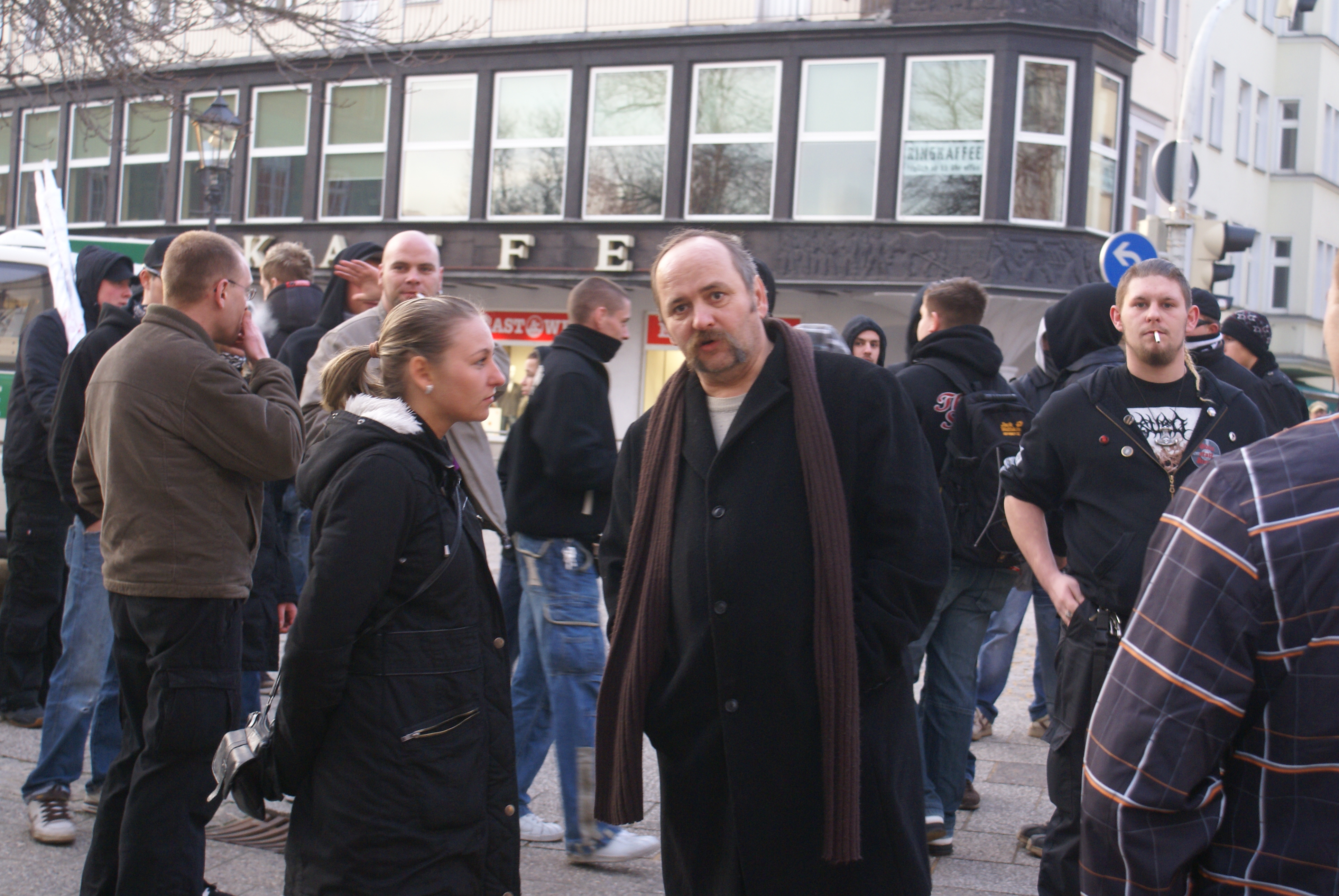Diese „Chemnitzer Melange“ konnte auch im September 2004, am Rande der Demonstration der Kampagne „Schöner Leben ohne Naziläden“ beobachtet werden. Während hunderte Antifaschist_innen unter anderen gegen den „Würfel“ — Hendrik Laschs Geschäftsräume — demonstrierten, sammelten sich knapp 150 Neonazis aus Chemnitz und anderen Teilen Sachsens im Bereich des Heckert-Gebiets. Unter ihnen waren Protagonisten der „HooNaRa“-/ Freefight- /Türsteher-Szene, wie Rico Malt und Thomas Haller, ehemalige B&H-Aktivisten wie die Richter Brüder und Michael Lorenz und ehemalige Mitglieder der verbotenen „Skinheads Sächsische Schweiz“ (SSS), wie Thomas Sattelberg, Tino K. und Daniel B. Auch der spätere Anführer des „Strum 34“, Tom W., sowie der ehemalige Republikaner, Burschenschaftler und Anwalt Martin Kohlmann, der nun für „Pro Chemnitz“ im Chemnitzer Stadtrat sitzt, waren am Rande zugegen. Als die Kampagne 2008 erneut in Chemnitz demonstrierte, tauchten abermals organisierte Neonazi-Gruppen am Rand der Route auf.
