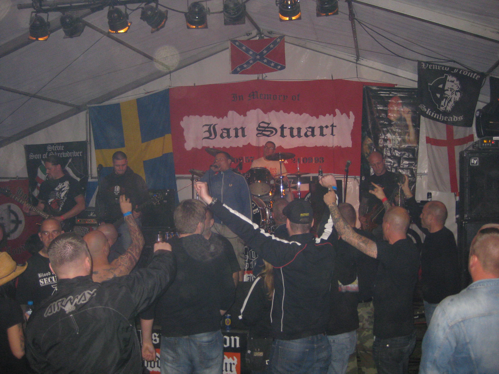 Auch dass die Flagge der „Skinheads Chemnitz“ international immer wieder ihren Platz am Rande der Bühne von RechtsRock-Konzerten findet, darf durchaus als Machtdemonstration einer Struktur gewertet werden, die als solche eigentlich nicht mehr existiert.