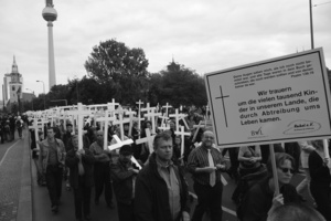 Nicht überall sind solche „1000 Kreuze“ bzw. Pseudo-„Lebensmärsche“ so überschaubar wie im katholisch geprägten Münster. In Berlin beispielsweise beteiligten sich 2016 nach Angaben von Pro-Choice-Aktivist_innen über 6.000 Menschen an der jährlich vom „Bundesverband Lebensrecht“ — einem Zusammenschluss von 14 Organisationen aus dem fundamentalistisch-christilichen Spektrum — organisierten Schweigedemonstration. Immer wieder unterstützen z. T. auch sehr bekannte und bedeutende Politiker_innen aus den Reihen der CDU/CSU, aber auch von der „Alternative für Deutschland“ (AfD) diese Märsche – sei es durch ihre persönliche Teilnahme oder durch ein Grußwort: 2014 beispielsweise der damalige Vorsitzende der CDU/ CSU-Bundestagsfraktion Volker Kauder. Aber auch Papst Franziskus und Reinhard Marx, Kardinal, Erzbischof und derzeit Vorsitzender der Deutschen Bischofskonferenz, sendeten schon Grüße an die Kreuzzügler_innen. Beatrix von Storch, die stellvertretende Bundesvorsitzende und Berliner Landesvorsitzende der "Alternative für Deutschland" (AfD), setzt sich auch schon mal an die Spitze des Berliner Marsches. Auch in anderen deutschen und europäischen Städten finden solche Märsche statt: Beispielsweise in Straßburg („300 kleine Europäer jede Stunde“), in München, der Homezone des Anmelders der von „Euro Pro Life“ organisierten Aufmärsche Wolfgang Hering, oder Annaberg-Buchholz. Sie sind das beste Beispiel dafür, dass sich Teile der „Lebensschutzbewegung“ weg von der CDU, hin zur AfD orientieren.