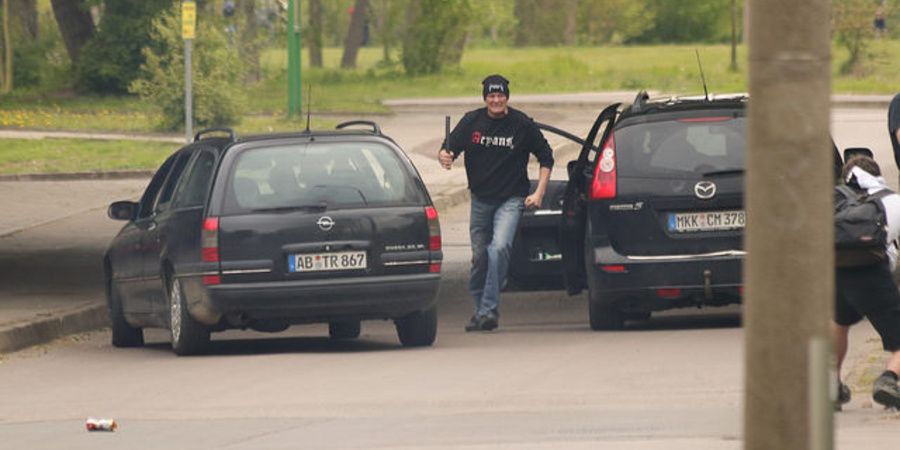 Als zwei Autos mit Neonazis an vermeintlichen Gegendemonstrant_innen vorbei fuhren, flogen erst Flaschen und Böller, dann wurde Reizgas aus den Autos versprüht. Beim vorderen Auto wurde die Tür aufgerissen und ein Neonazi stürmte bewaffnet mit einem Schlagstock auf eine Gruppe Jugendlicher zu. Weitere Neonazis aus beiden Autos folgten und schlugen gezielt auf die Köpfe der Jugendlichen ein. Später wurde bekannt, dass die Polizei wegen versuchtem Totschlag ermittelt, mittlerweile — laut Presse — „nur“ noch wegen schwerer Körperverletzung.