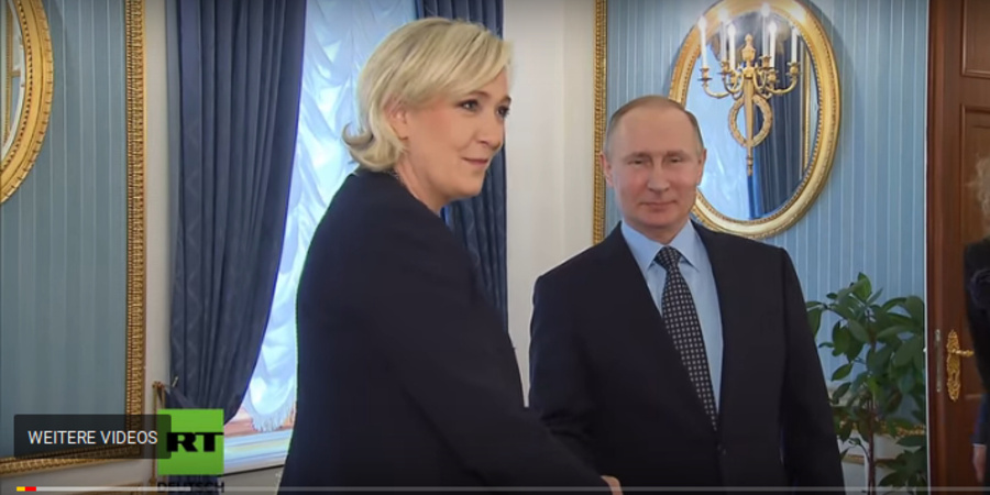 Bernard SchmidAller schlechten Dinge sind drei: Es waren drei ausländische Staatsoberhäupter, die im französischen Wahlkampf 2017 der Chefin und Präsidentschaftskandidatin des Front National (FN) — Marine Le Pen — einen Empfang bereiteten, und dadurch deren „staatsmännische“ oder „staatsfrauische“ Statur unter Beweis zu stellen schienen. Nach dem libanesischen Präsidenten Michel Aoun und dem Staatschef des Tschad, Idriss Déby, folgte am 24. März 2017 ein Treffen Le Pens mit Wladimir Putin. Die Audienz im Kreml war im Vorfeld russischen kremltreuen Medien bekannt gewesen, doch der internationalen Presse nicht angekündigt worden. In mehreren russischen Medien wurde Le Pen dabei als künftige Präsidentin vorgestellt oder mit Jeanne d’Arc verglichen, also mit der von historischen Legenden umworbenen „Jungfrau von Orléans“. Es handelte sich nicht um den ersten Kontakt der Parteivorsitzenden des französischen FN mit den russischen Machthabern.