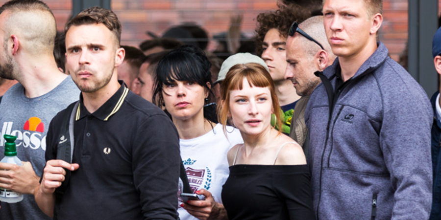 Philip Thaler (schwarzes Hemd) und Melanie Schmitz (schwarzes Oberteil) auf einer Veranstaltung der "Identitären Bewegung".