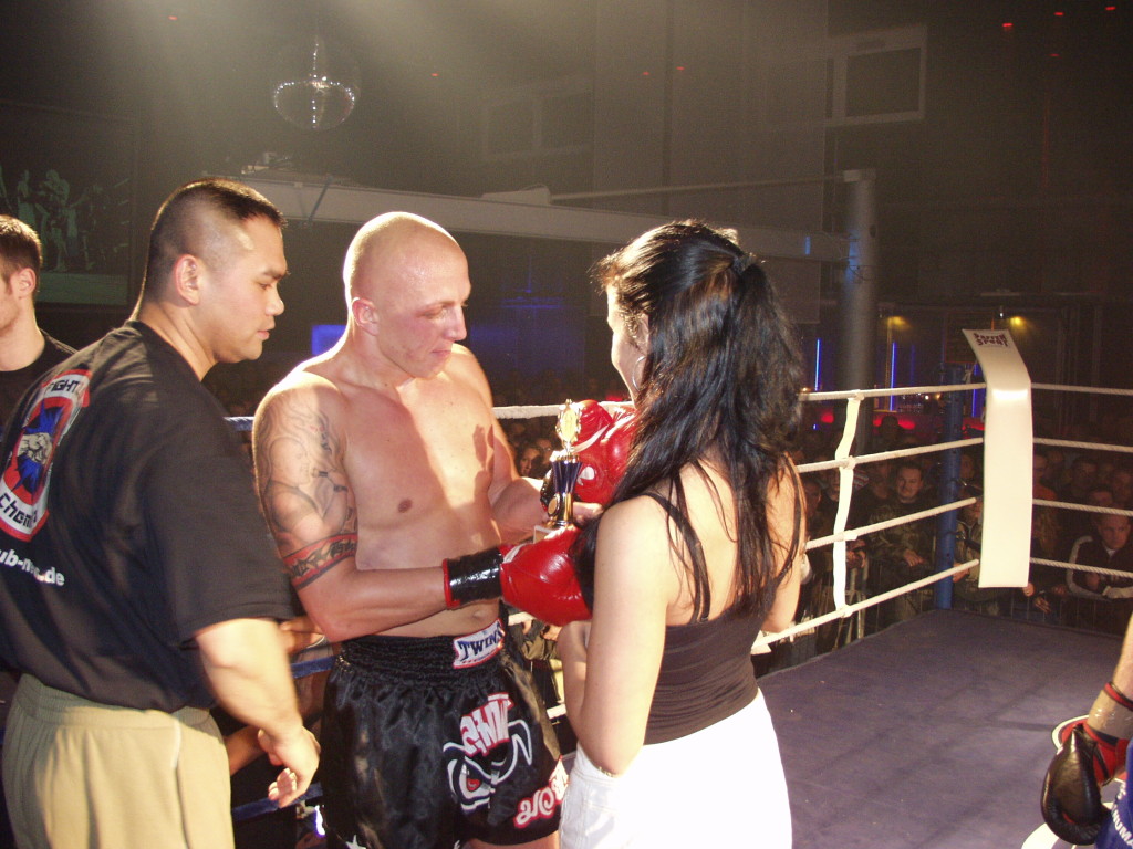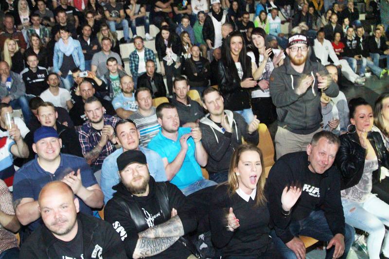 In Deutschland traf sich die rechte Kampfsport-Szene im Oktober des gleichen Jahres abermals in Vettelschoß. Malte Redeker galt auch diesmal als Drahtzieher. Der verstorbene „Hammerskin“ und V-Mann Roland Sokol hatte Redeker geholfen Kämpfer zu finden. Dabei stand Sokol auch mit dem Hamburger MMA-Kämpfer und Neonazi Frank Kortz in Kontakt.7 Dieser hatte Sokol mitgeteilt, dass er sich bereits bei „Malte aus LU“ angemeldet hatte– gemeint ist wohl Malte Redeker aus Ludwigshafen, der an dem Abend auch als Ringrichter fungierte. Ob Kortz tatsächlich kämpfte, ist nicht bestätigt, dafür aber der Kampf des Ungarn Suhajda „Starec“ Zoltán, der für „Pride France“ in den Ring stieg.