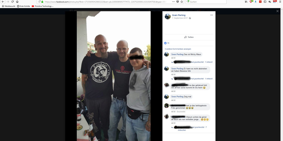 M. Schönfeld (links) und Sven Perling (mitte) posieren in rechtem Szene-Outfit im Internet.