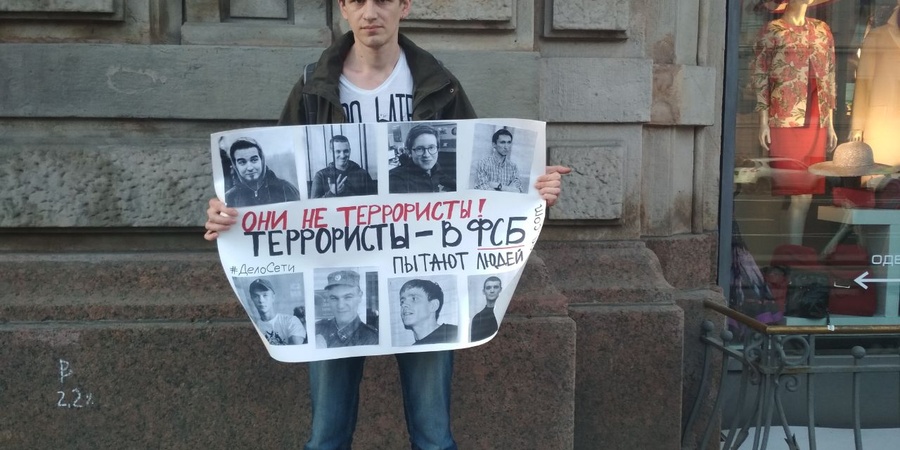 Eine Solidaritätsaktion in Russland: „Sie sind keine Terroristen - Terroristen des FSB foltern Menschen“.