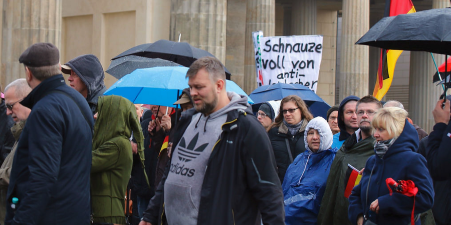Tilo Paulenz (mittig) bei einer Demonstration gegen den UN-Migrationspakt im November 2018 in Berlin.