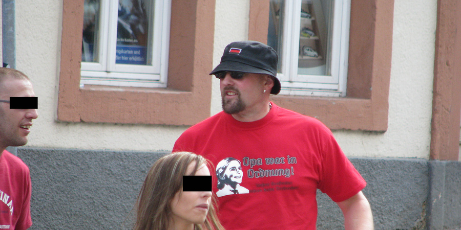 Der Neonazi Riccardo S. war einer der 215 festgesetzten Personen im Januar 2016 in Leipzig-Connewitz. Hier als Teilnehmer eines Neonazi-Aufmarschs am 18. August 2008 im thüringischen Altenburg.