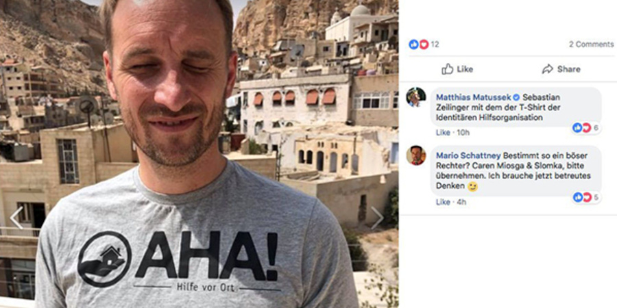 Eingeladen in die christliche Kleinstadt Maalula in Syrien wurde AHA angeblich vom Patriarchen der melkitisch griechisch-katholischen Kirche in Syrien. In Maalula hatte vor der Rückeroberung durch Regierungstruppen der IS gehaust und gemordet. In dem JF-Text beschreibt Matussek die Assad-Diktatur als multireligiös und friedlich. Einer Rückkehr syrischer Flüchtlinge stände somit nichts entgegen. Später interviewte Matussek im AfD-nahen „DeutschlandKurier“ seine beiden Mitreisenden Zeilinger und Müller.2 Zu AHA meint Müller: „Die AHA! ist derzeit das einzige deutsche Hilfsprojekt, das im Nahen Osten aktiv ist, um Hilfe vor Ort zu leisten, statt die Auswanderung nach Europa zu befördern. Wir wollen zeigen, dass es anders geht, dass Masseneinwanderung nach Europa keine Probleme löst, sondern im Gegenteil nur neue schafft.“ Immerhin gibt Müller im Verlauf des weiteren Interviews zu: „Wir sind uns allerdings auch bewusst, dass unsere Hilfsmaßnahmen – so wichtig und nötig sie im Einzelfall sein mögen – vor allem Symbolpolitik sind.“ Offenbar stehen dem Verein eher geringe Ressourcen zur Verfügung.