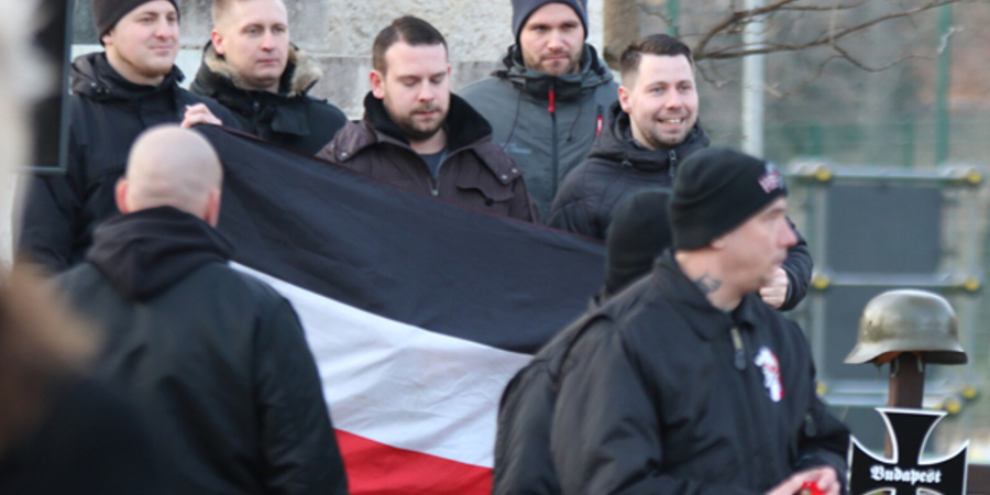 „Budapester 2. Sturmkompanie - Hier! 8. SS-Kavallerie-Division ‚Florian Geyer‘ – Hier! (...)“. Es folgen die Namen weiterer deutscher und ungarischer Truppenverbände, vorgetragen im tiefsten, sächsischen Dialekt. Es ist der 8. Februar 2019. Bis zu 30 deutsche Neonazis sammeln sich in der Nähe von Szomor, um unter Trommelschlägen durch die Nacht zu einem Gedenkstein zu ziehen, den sie laut eigener Aussage vor einigen Jahren dort errichtet haben. Dieses „Heldengedenken“ fand konspirativ, außerhalb der offiziellen Aufmärsche statt. Gefilmt wurde es jedoch von Nikolai Nerling, der mit seinem YouTube-Format „Der Volkslehrer“ seit einigen Jahren u.a. Neonazi-Events begleitet und propagandistisch aufarbeitet.