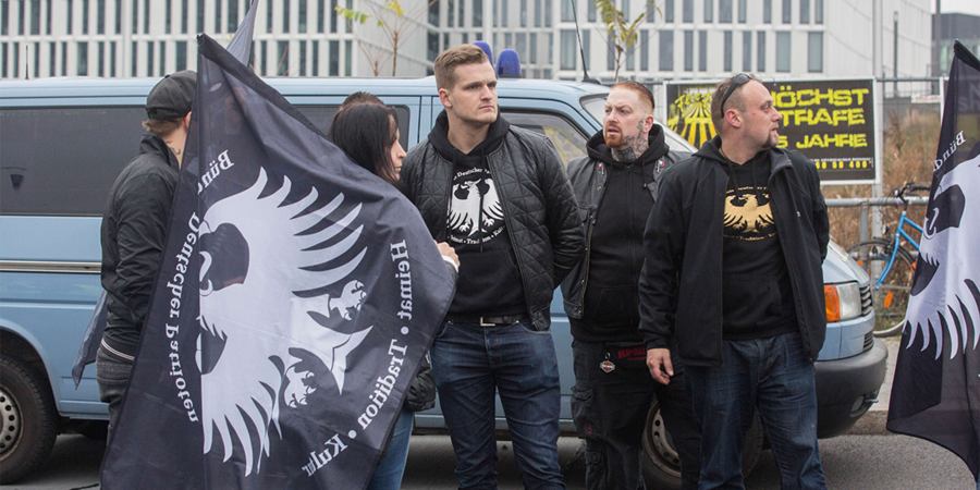 Christoph Zloch alias „Chris Ares“ (Bildmitte) am 5. November 2016 bei einem rechten Aufmarsch in Berlin.