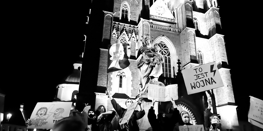 Als sich nun der aktuelle feministische Protest direkt gegen Kirchen und katholischen Klerus richtete, erklärte man im rechten Lager schnell den Moment einer konkrete Materialisierung jenes imaginierten Kampfes für gekommen. So wandte sich etwa der Vorsitzende der PiS-Partei Jarosław Kaczyński mit einer Videobotschaft an seine Anhänger*innen: „Wir müssen die polnischen Kirchen um jeden Preis schützen. Ich rufe alle dazu auf, an der Verteidigung der Kirche teilzunehmen. [...] Das ist ein Angriff der Polen vernichten soll. [...] Der Angriff soll zu einem Triumph jener Kräfte führen, deren Herrschaft im Grunde die Geschichte der polnischen Nation, wie wir sie bislang kennen, beenden wird.“