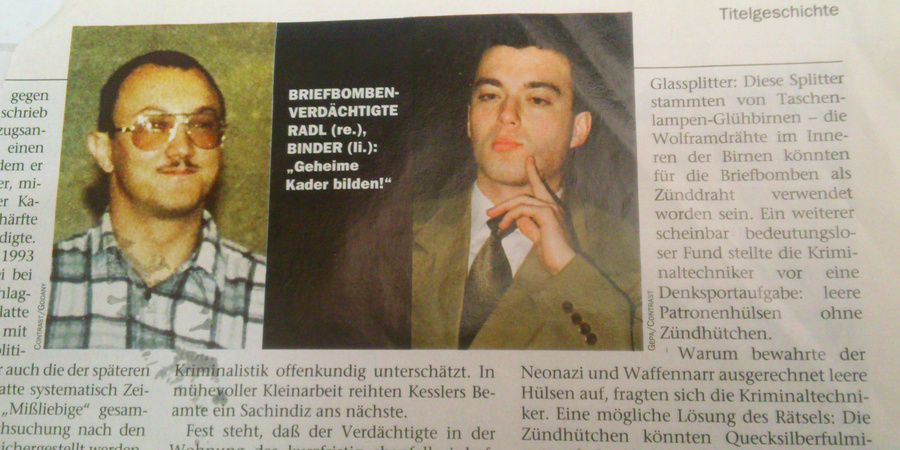 Peter Binder ging als Verdächtiger im Zusammenhang mit den Briefbomben durch die Medien (Faksimile).