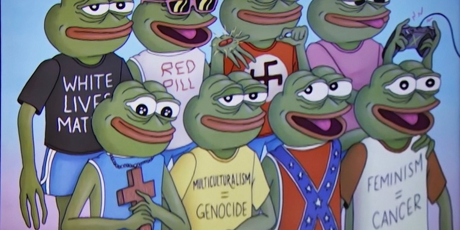 - 2Das Internet-Meme "Pepe the Frog" wurde in den 2010er Jahren ein Symbol der "Alt-Right"-Bewegung und von weißen Rassisten. Matt Furie - der "Pepe der Frosch"-Schöpfer - gewann 15.000 Dollar in einem Vergleich gegen des rechte Format "Infowars" und eine Reihe von Klagen gegen die Übernahme seiner Karikatur durch die extreme Rechte. Eine Variante von Pepe - die "Groyper" wurde 2017 populär. Eine froschähnliche Kreatur, deren Kinn auf verschränkten Fingern ruht.