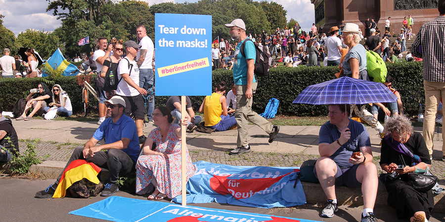 Zur selben Zeit gründen die Dramaturgen Anselm Lenz und Hendrik Sodenkamp die „Kommunikationsstelle Demokratischer Widerstand (KDW)“, über die ab dem 28. März zu wöchentlichen „Hygienedemos“ vor der Volksbühne in Berlin aufgerufen wird. Es sind die ersten Mobilisierungen gegen die staatlichen Eindämmungsmaßnahmen gegen das Corona-Virus. Die KDW gibt ab Mitte April die gleichnamige Zeitschrift „Demokratischer Widerstand“ heraus. Der Titel der ersten Ausgabe formuliert den grundsätzlichen Anspruch der Initiatoren: „Wir sind die Opposition!“. Neben taktischen Formulierungen, man gehe „für Freiheitsrechte“ und zur Verteidigung „erkämpfter Grundrechte“ auf die Straße, finden sich schon in der ersten Ausgabe allerlei Äußerungen, die Aufschluss über die ideologische Flexibilität geben. Medien seien „gleichgeschaltet“, die Republik ein „de-facto-diktatorisches Hygiene-Regime“, medizinische Schutzmasken „Maulkörbe“ und staatliche Rettungsschirme „Halt-die-Fresse-Pakete“. Es ist in dieser Anfangszeit nicht falsch, von einer verschwörungsideologischen „Querfront“ zu sprechen, die hier gegen die staatliche Corona-Politik auf die Straße geht.