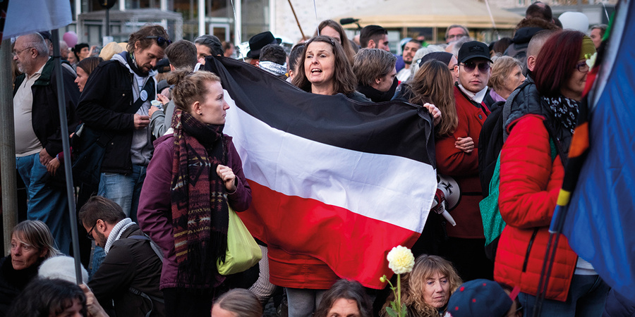 Nicht erst im Vorfeld der 2020er Demonstration in Leipzig hatten Vertreter_innen von „Querdenken“ zur Beschreibung der von ihnen wahrgenommenen gesellschaftlichen Situation in der Pandemie die Spätphase der DDR als zeitgeschichtliche Referenz herangezogen, um ihrem Protest historische Legitimität zu verschaffen. Wie im Jahr 1989 gelte es in der Pandemie gegen eine alle Bereiche des Lebens durchdringende Diktatur vorzugehen, die die individuellen und kollektiven Freiheitsrechte mit Füßen trete, und jene unter den Druck politischer Diffamierung und Verfolgung setze, die sich der angeblichen „Corona-Diktatur“ zu entziehen suchten. Entsprechend griffen „Querdenken“-Akteure auf Schlagworte des Herbstes 1989 zurück. In den ostdeutschen Ländern stieß dies auf Resonanz. Ein Sonderfall stellt Sachsen dar: Wie schon im Kontext der Mobilisierung gegen Geflüchtete in den Jahren nach 2015 tritt hier offensiver als andernorts ein rechter gesellschaftlicher Block auf, dessen Resonanz weit über den Kern des eigenen Milieus hinausreicht.