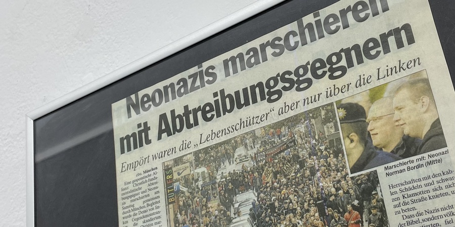 Dabei zeichnen sich phasenweise Höhepunkte dieses kollektiven Kampfes gegen die Kriminalisierung in der Münchner Räterepublik, der Weimarer Zeit und in den Frauenbewegungen der 1970er Jahre ab. In der Ausstellung wurde dieser jahrzehntelange Protest mit alten Plakaten, Flyern und Bildern erlebbar: Pappschilder mit der Parole „Ob Kinder oder keine, entscheiden wir alleine“ erinnerten an einen Tag im Jahr 1971, als rund 3000 Münchner*innen für die Streichung des §218 StGB auf die Straße gingen. Auch in den 2000er Jahren bleiben es immer wieder antifaschistische und feministische Gruppen beziehungsweise. Bündnisse, die unermüdlich zu Protesten gegen sogenannte „1000-Kreuze-Märsche“ und andere Aktionen radikaler Abtreibungsgegner*innen in München mobilisieren.