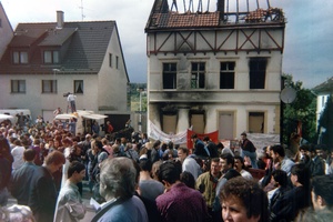 Aus NF-Schulungen wurden Taten: Am 17. Dezember 1988 verübte das NF-Mitglied Josef Saller einen Brandanschlag auf ein vorwiegend von Migrant:innen bewohntes Haus im bayerischen Schwandorf. Vier Menschen verbrannten bzw. erstickten.