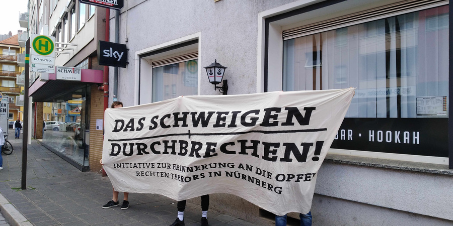 Antifaschistische Initiative „Das Schweigen durchbrechen!“Am 23. Juni 1999 explodiert in der Pilsbar „Sunshine“ in der Nürnberger Südstadt eine Rohrbombe. Der Sprengsatz steckt in einer Taschenlampe, die bei Betätigung explodiert. Der 18-jährige Mehmet O., der in der Bar putzt, wird durch die Splitter in Oberkörper, Gesicht und Armen verletzt. Am 9. September 2000 vertritt Enver Şimşek einen Kollegen an einem mobilen Blumenstand in der Liegnitzer Straße in Nürnberg. Kurz nach 15 Uhr wird er im Laderaum seines Transporters schwer angeschossen aufgefunden. Die Täter feuerten acht Mal auf ihr Opfer. Am 13. Juni 2001 wird Abdurrahim Özüdoğru, vermutlich gegen 16.30 Uhr, in seiner Änderungsschneiderei im Alter von 49 Jahren durch zwei Kopfschüsse getötet. Stunden später wird seine Leiche gefunden. Ismail Yaşar wird 9. Juni 2005 um 10:15 Uhr in seinem Imbiss in der Scharrerstraße in der Nürnberger Südstadt von einem Kunden tot aufgefunden, getötet durch zwei Kopfschüsse sowie drei Schüsse auf den Oberkörper.